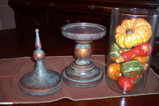 These are the items that I recently earned totally and completely FREE based on a sales incentive offered by the company. It was like Christmas came early when I got all this – did I mention for FREE?! Don’t you just love that hand-painted bowl? And check out what I did with the glass trio – candy corn candles!