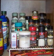 I have gone through and thrown away many expired medicines….I wish I could say it was planned. I am stuck, sick at home. First with Strep Throat, and now I think with a Sinus Infection. I have gone through our medicine cabinet looking for anything that will help me breathe through my nose again (no luck…almost everything we had was expired! Plus, I don’t think it would do me much good anyway.) Hubby has gone to the store and re-stocked our medicine cabinet and nothing has helped me so far…so it’s back to the dr. I go. : ( Maybe sometime when I’m feeling better I’ll get to our spices : )