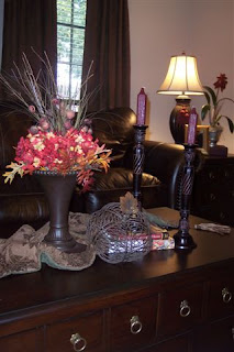 This is my living room. Sometimes I call it the orchid room because I have lots of faux orchids that rotate their way around this room – wish they were real but I kill them every time! This can also be called the monochromatic room. I just love all the chocolately-ness (not a word, I know) in here! There is a pop of color here and there. Oh and at Christmas it is the Nutcracker Suite…