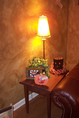 There were lots of other fun things to look at but I think I will wrap it up in this corner. This is another table built by Casey – actually I think this was his first. I love how Amy has accessorized it. I WANT that jack-o-lantern luminary!