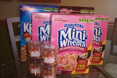 Purchased 5 Kellogg’s Cereals at $2.75 each plus 4 Glade Holiday candles at $2.50 each.