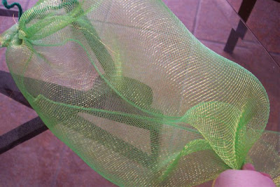 The magic of this look is in the mesh. It has a wonderful reflective quality and really softens the garland. The mesh comes in rolls like this. You can shop in high end stores and pay way to much for this stuff if you like. Or you can do a little shopping around to find it at bargain basement prices. Here they have it at the antique/flea market type booths. I lucked into a 50% off sale at at a local floral shop (Tipton & Hurst, for all the locals) .