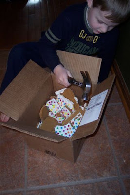What do you do when you well-meaning mom buys your soon to be 5-year-old son a REAL hammer AND when your soon to be 5-year-old son doesn’t understand why we need to throw out the REAL gingerbread house he so meticulously crafted? I’ll tell you what I did – I let my brilliant husband come to the rescue and suggest that he get to use his REAL hammer to smash the REAL gingerbread house! “Won’t that be fun?”, his daddy touted. BBC quickly agreed and both problems were solved! Thanks DH, uh, or I should say BH!