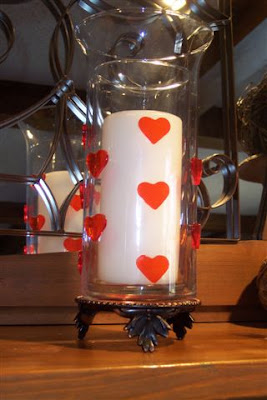 Remember the project I did at Christmas with the two glass cylinders? They’re back! I found the cutest cutout scrap paper at Hobby Lobby on sale for $0.99! A little double-sided tape, a black stand that I had around the house and presto chango – a fun new look for the day of love!
