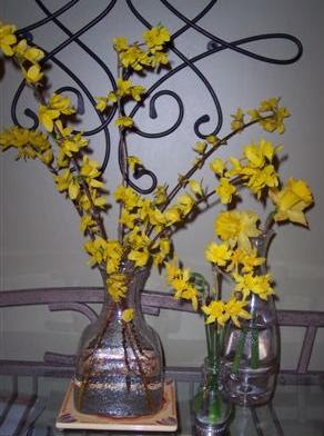 Thank you for allowing me to randomly sneak over during the freezing weather a few days back to rescue a few cheery blooms from the edge of your yard. I promise I have treated them better than the freezing weather and they have repaid me by bringing many a smile to my face over the past few days. As a token of my thanks, please feel free to stop over and pick a big handful of the clover that is currently trying to overtake my yard.