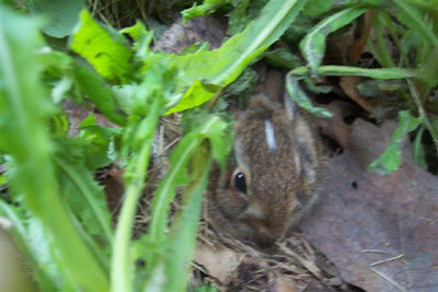 There is a bothersome patch of dandelions in the back corner of the yard. They were sprayed last week and DH and BBC were back there pulling them last night. BBC discovered this sweet little surprise in the weeds…