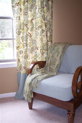 You did a wonderful job. I do like the green trim on the drape. Makes it look finished and ties in nicely. The blue adds a nice pop to the room.