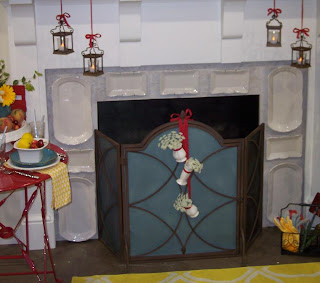 Loving the plates to dress up the surround and the painted board mounted to the back of the Cordova Fire Screen.