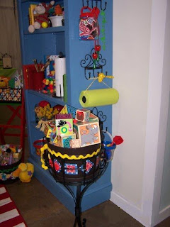 This is such a fun craftroom nook. Love mixing all the bright colors together and using our many baskets, planters, buckets and such for organization. Doesn’t this just make you want to craft something?