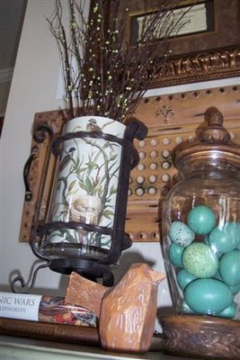 And if you have been around this blog very long you probably saw what I did with it in early spring. As we got closer to Easter I removed the paper, plopped in those eggs (along with a few more), and kept the same sticks. Then in summer it was filled with white sand, small sea shells we collected over the years and a candle.