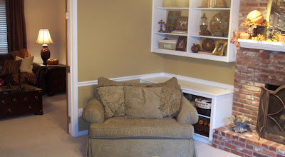 What a warm and cozy living room you have! The fall mantel decorations look fantastic, as do the built-ins! I love the wall color, your furniture, and that great fireplace. I would light a fire, get in that comfy chair with a good book and never leave.
