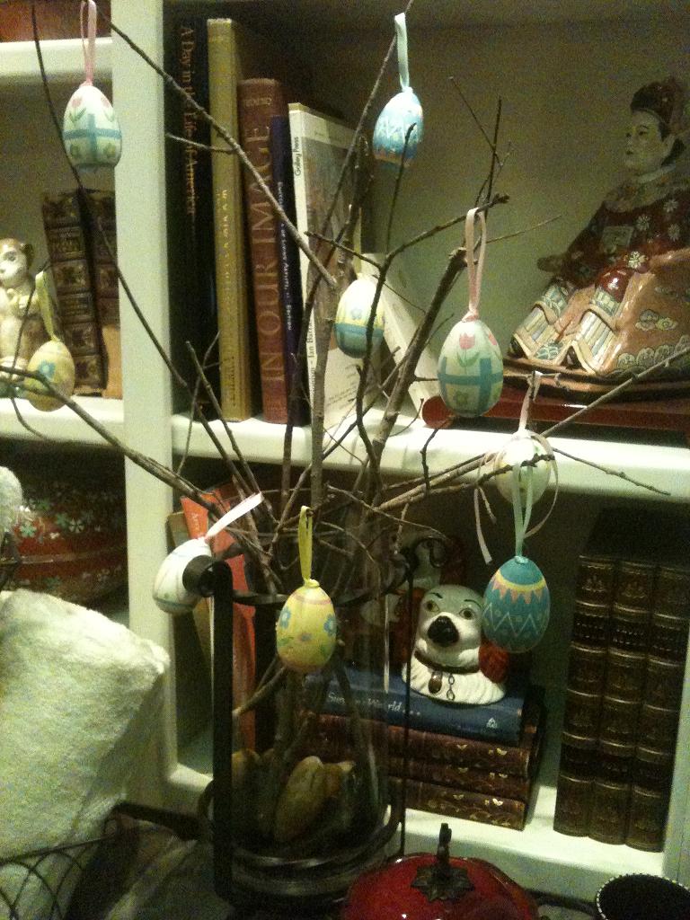 I love this sweet little idea. I can’t remember who brought this one. If you are reading this and you know please let me know so I can give credit. She added Easter egg gel clings to the outside of our Ruffled Glass Bowl and simply floated tea lights in water. I picture three of these lining the table on a beautiful runner with twigs, eggs, and/or bunnies tucked around – wouldn’t that be so sweet? I also saw the cutest bunny floating candles at TJ Maxx that would bring a nice touch to this idea.