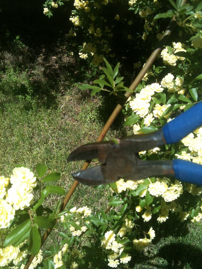 And voila – a fabulous new (and FREE) greeting for guests. It took me no more than 15 minutes to gather everything and pull this together. I only used three or four clippings because they were so long I could make them go further. I wasn’t too greedy. I also love that the yellow flowers match the pollen haze on the door – nice touch, eh?!