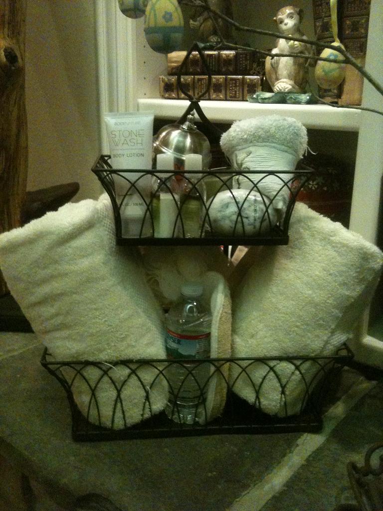 If you are having overnight guests, how wonderful would this be in the guest bathroom. Make your guests feel like they have escaped to a spa by rolling up towels and placing them in our Farmhouse Tiered Basket. Add bottled water, hotel size shampoos, soaps, loofahs, etc. to enhance the spa experience!