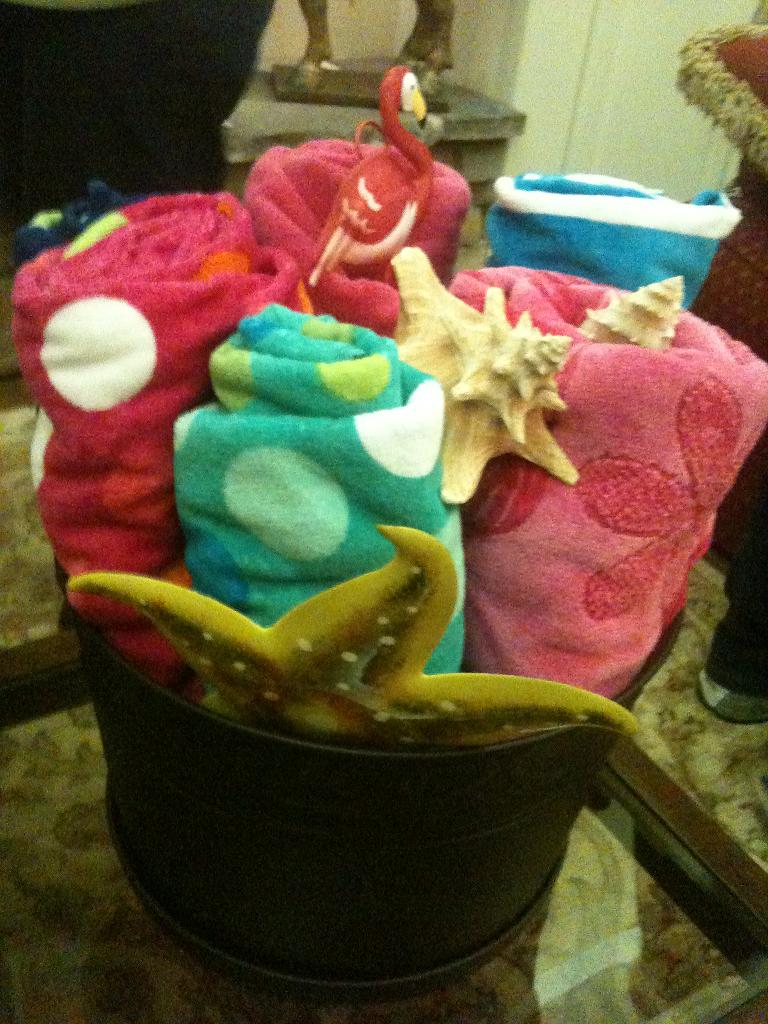Live near a beach, lake, or pool? How cute are these beach towels rolled up in our Entertaining Bucket and Tray for guests?