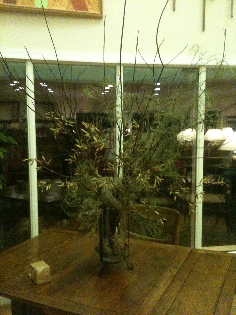 Make guests feel special in a BIG way! I love how Sue Fess turned a Galveston Hurricane into a BIG centerpiece for this game table. She is the expert at gathering twigs and flowers from her garden and throwing together an inexpensive and GORGEOUS centerpiece. It always makes me feel special knowing that she lovingly clipped her own flowers to display for me (and her other guests) to enjoy.