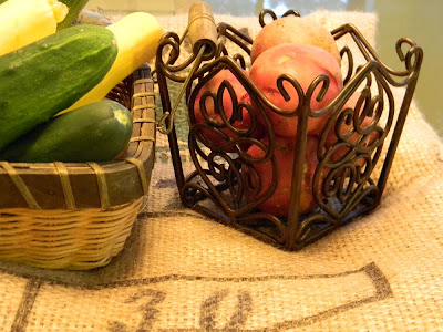 I added the burlap bag for a little funk and texture. This frees up precious counter space (storage solution), inspires me and reminds me to cook them (healthy eating), and dresses my table beautifully (unexpected functionality).