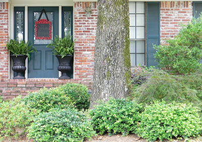 Stalking begins at home…I realized after seeing all your curb appeal pictures yesterday that I usually just focus on the door and don’t provide perspective. So here’s a peek at what you will see as you drive past our home.