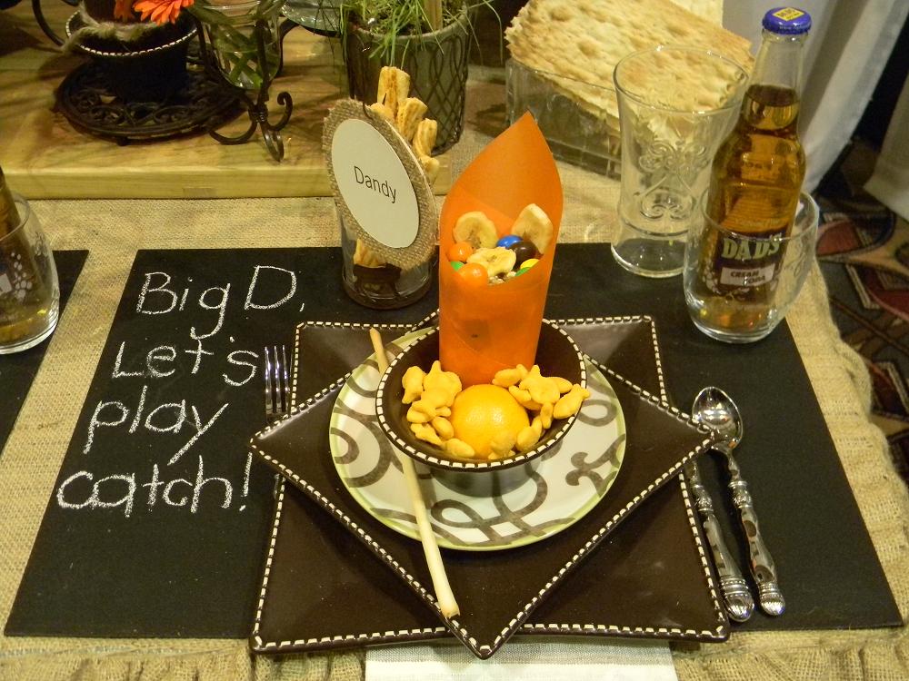 This table setting just captured my heart. How sweet is this for a Father’s Day get-together – especially if they like to fish! This table had fishing poles and goldfish crackers – just too cute! I know y’all are crazy about chalk boards, right? How cute to use one as the charger and write a special message at each place! This idea has play at all sorts of events.