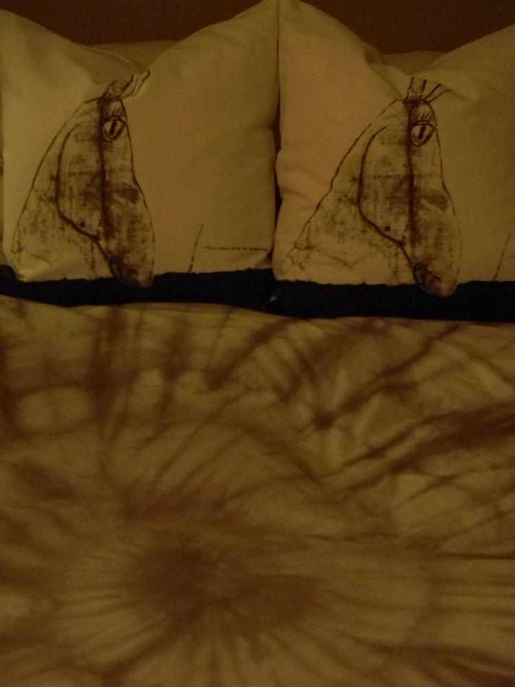 I so wish this picture had turned out better. This is her master bedding. Did I mention my Kendra has a wild side, too? A good majority of her home is classic with little twists here and there. I love how she mixes this fun tie dyed duvet cover with whimsical horse pillows. This is still a perfect reflection of her, yet shows a little more than most get to see. Love her!