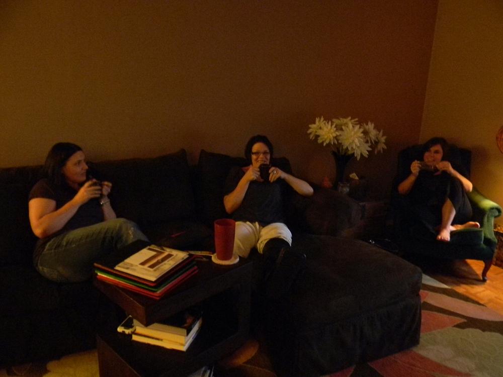 A few lovely guests gathering, sipping coffee, and chatting it up before we begin the presentation.