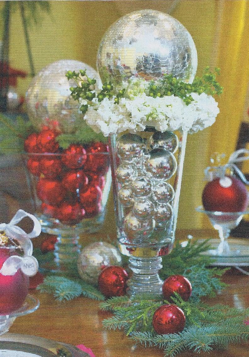 Hurricanes transition easily from harvest to Christmas with a few simple adjustments. These would look lovely with just the glass balls and greenery. I like how they are topped off with fresh flower rings and a larger glass ball as well. Photo: Christmas with Southern Living 2007