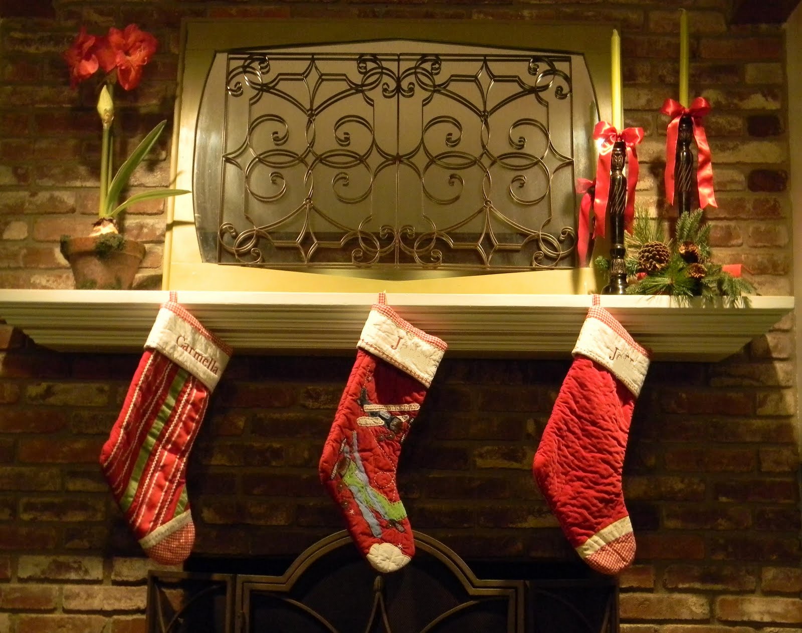 From the tree we see the mantel. Much like the door and banister, I decided to tone down and simplify this year.This is the second version of the season. I’m a tweaker. Are you? I will tweak until the day this stuff gets packed up again for next year. It’s a sickness.