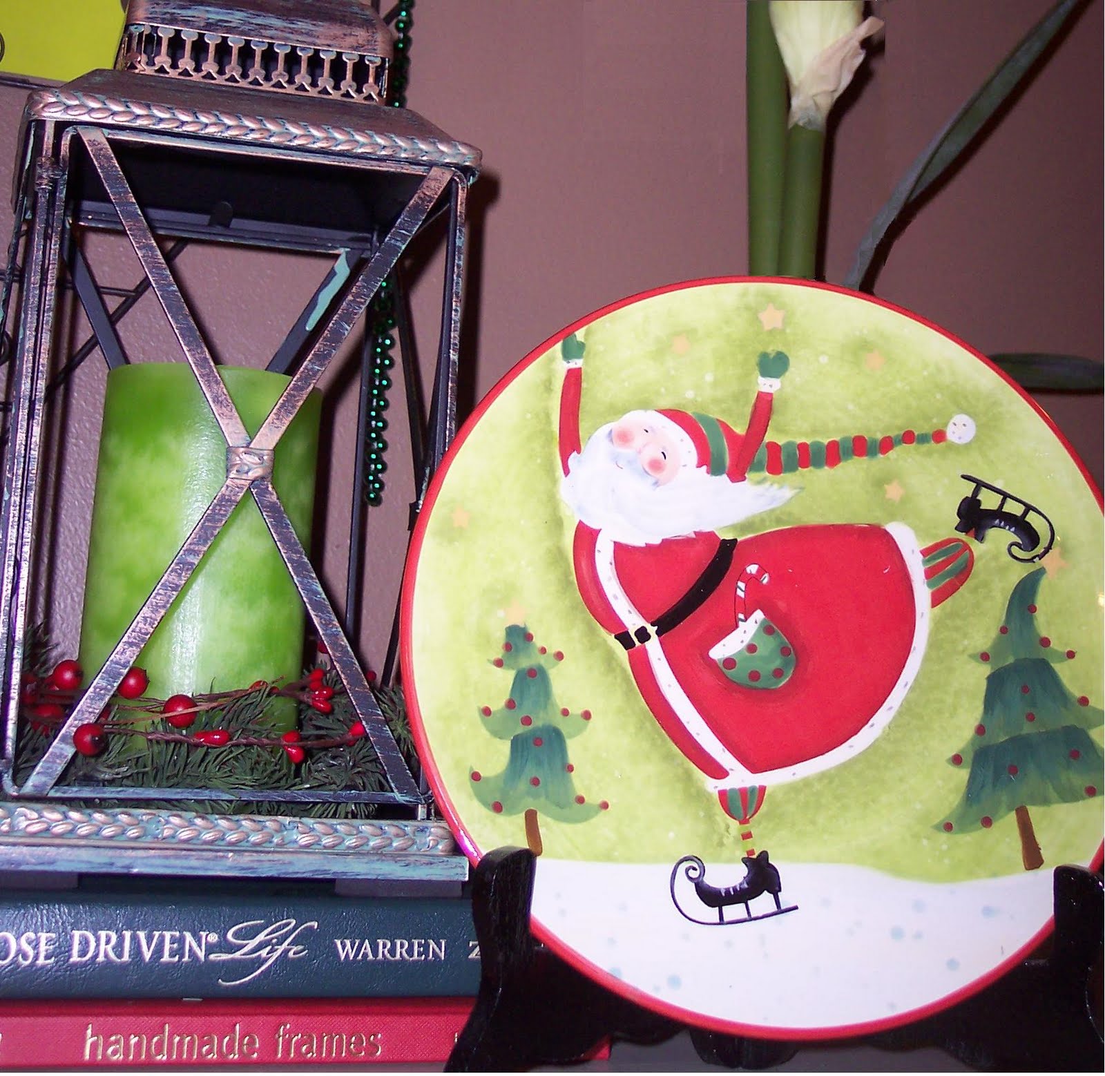 I love this combo of items on my hallway table last year. I got a few of those Santa plates for around $3 each at TJ Maxx. I can’t wait to dust them off and find a home for them this year.