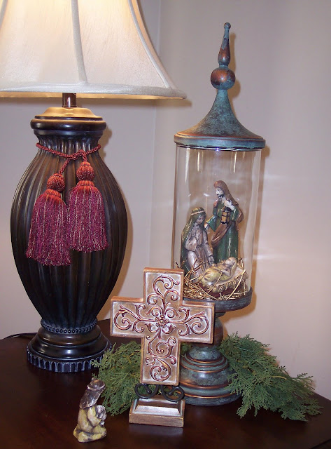 Another nativity display. The fringed runner brings interest and elegance to the display.