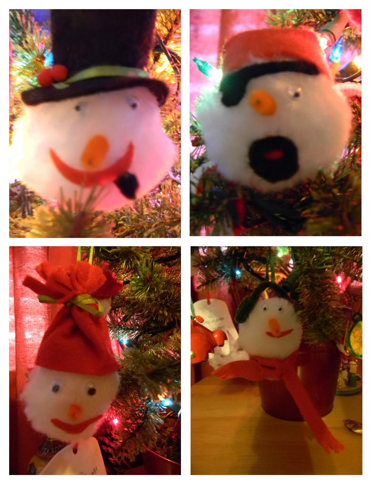 We also got crafty a couple of years ago with a pack of white pom pom balls, googly eyes, felt, and pipe cleaners. I just took these pictures today hanging on