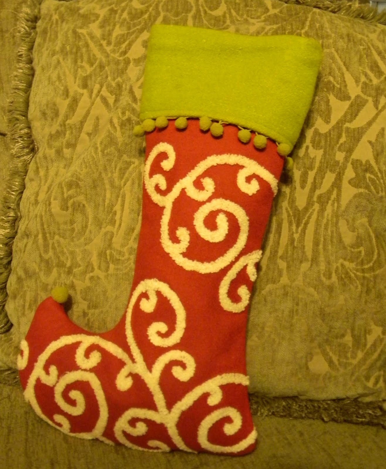 Jolly Holiday Stocking stuffed with tissue paper on the powder room door.
