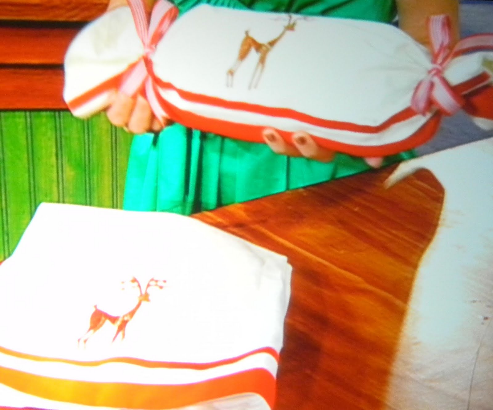 I think this idea is adorable and I wish I had a better picture to share with you. Wrap a loaf of fresh baked bread (from your kitchen or the local bakery, I won’t tell) in a Roxy Reindeer Accent Towel (70091 set of two for $26.96) and cinch up the ends with coordinating ribbons.
