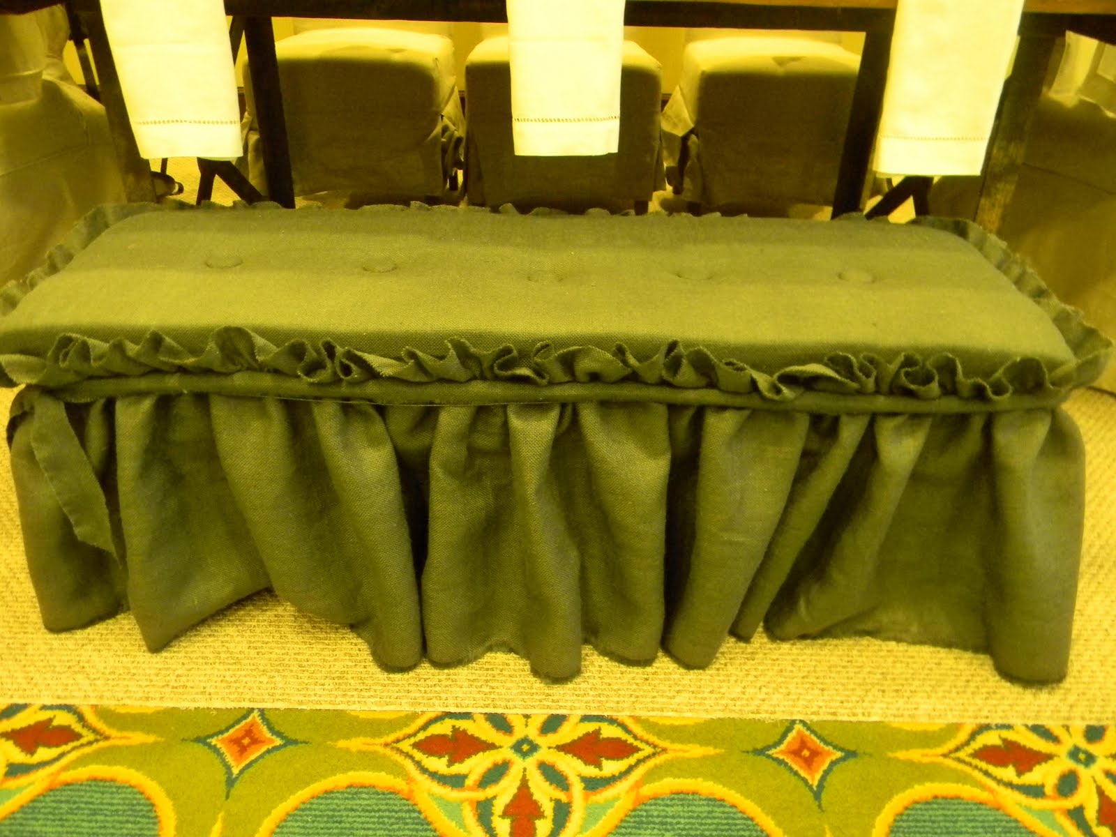 I love, love, love that bench! So feminine with all that ruffle. Where could I put this in my house? Maybe I could figure out how to do that with the piano bench. Hmmm….