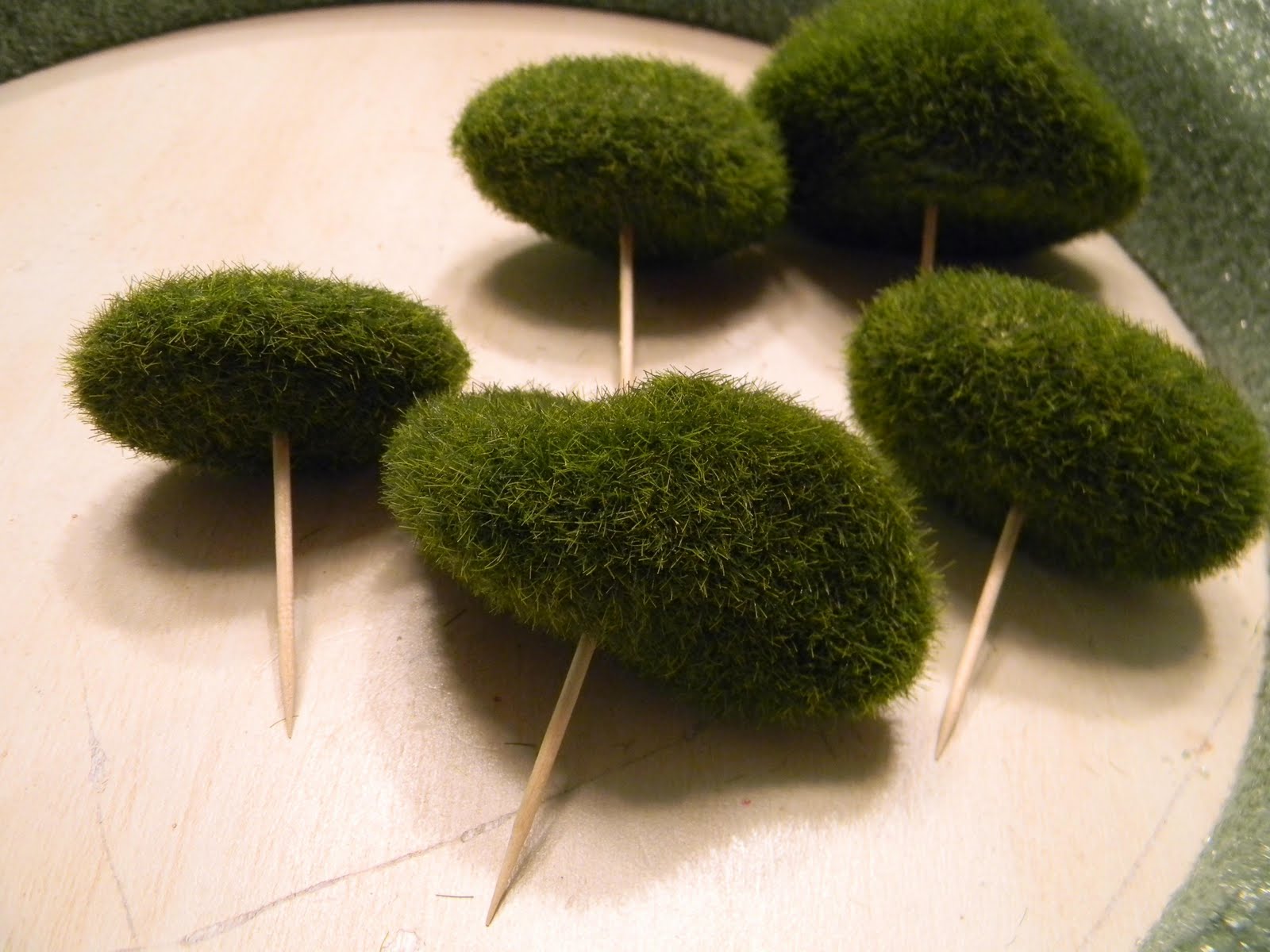 The inside of the mossy rocks are styrofoam. This means you can manipulate the rocks into the shape you need to complete the puzzle. These both started as the same size and shape. Vary the angle of the toothpick to make the fit more secure.