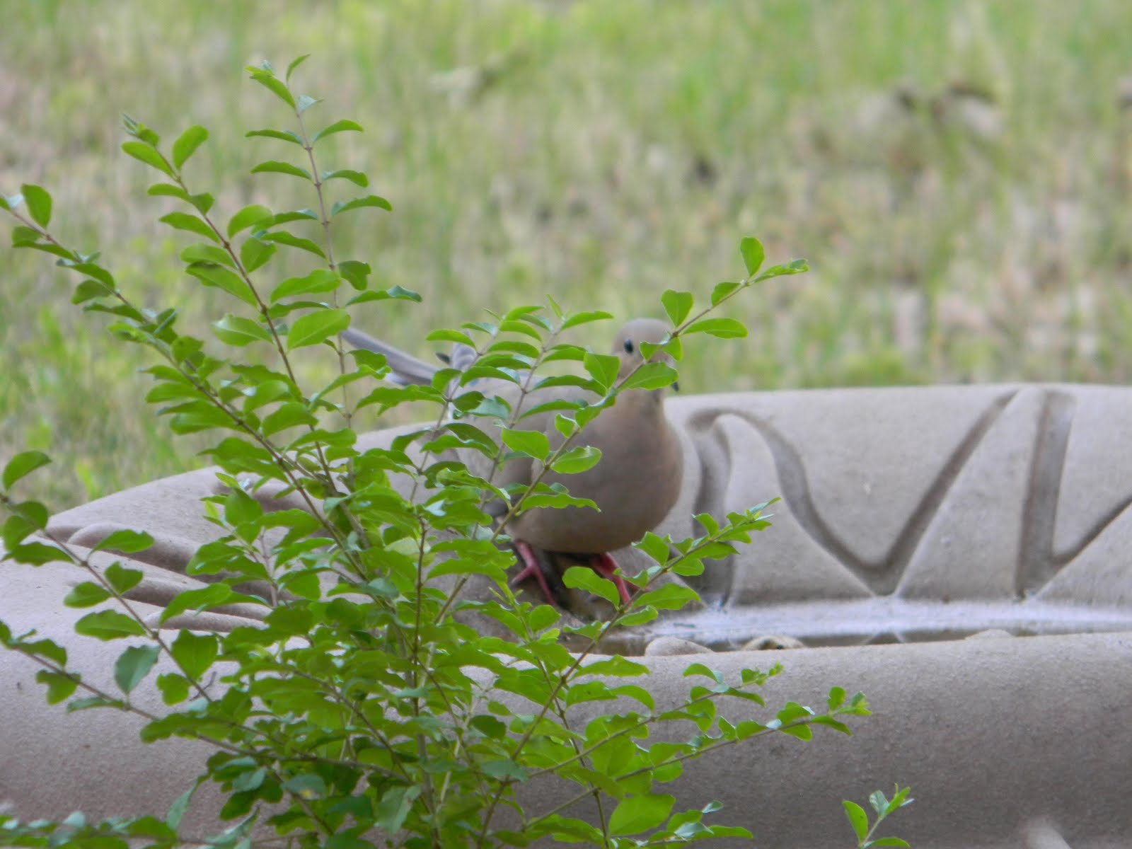 We played with worms and had a buddy or two stop over to dine and drink. I was amazed at how close this dove was to us. It stayed there a long while. We also had a greedy robin taking the worms we uncovered.