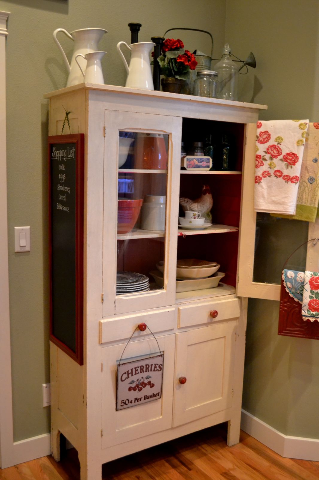 The antique cabinet has red handles and interior paint, so the red on the frame is a perfect match with rest of the piece!
