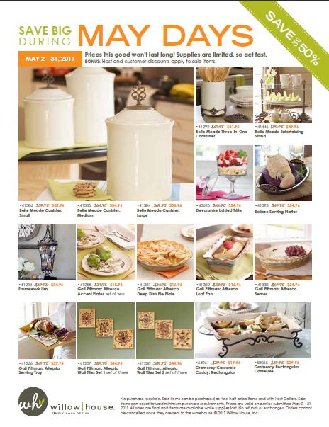 Willow House Wednesday: May Days Sale By Carmella random thoughts Permalink 0 Save big with our Willow House May Days sale! These fabulous deals and more are available in my online store. Happy May Days!!! ~Southern Fried Gal