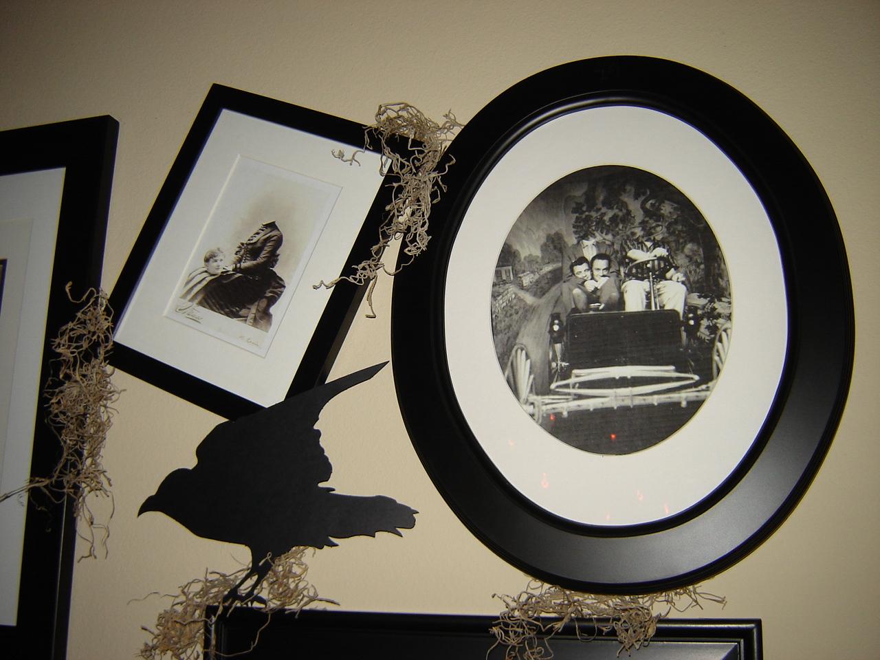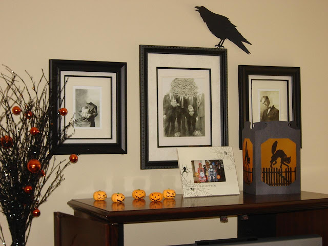 This gallery of headless portraits is perfection! I believe she got the portrait prints form the Pottery Barn decorating website. The touches of Spanish moss and crow silhouettes give this area personality. Super cute!