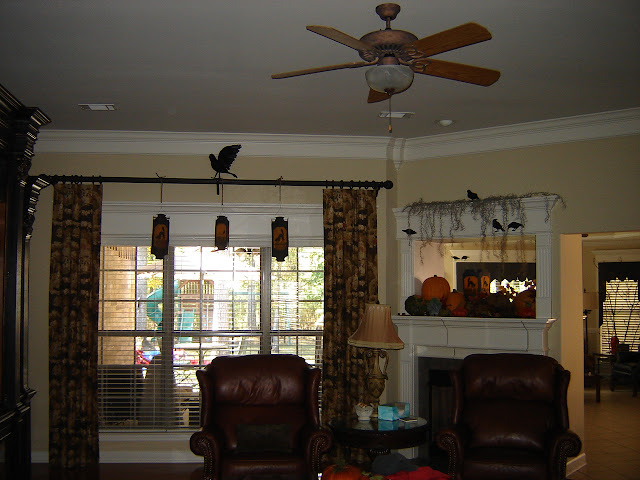 My friend Chas has done it again. She is the queen of tastefully spooky home decor. This year she was inspired by the headless horseman. He’s even standing watch over her door to greet guests! (Remember: you can click on the pictures to enlarge the view.)