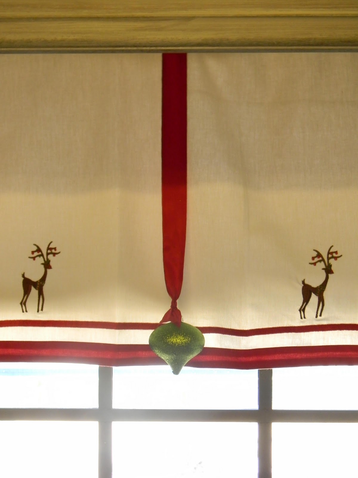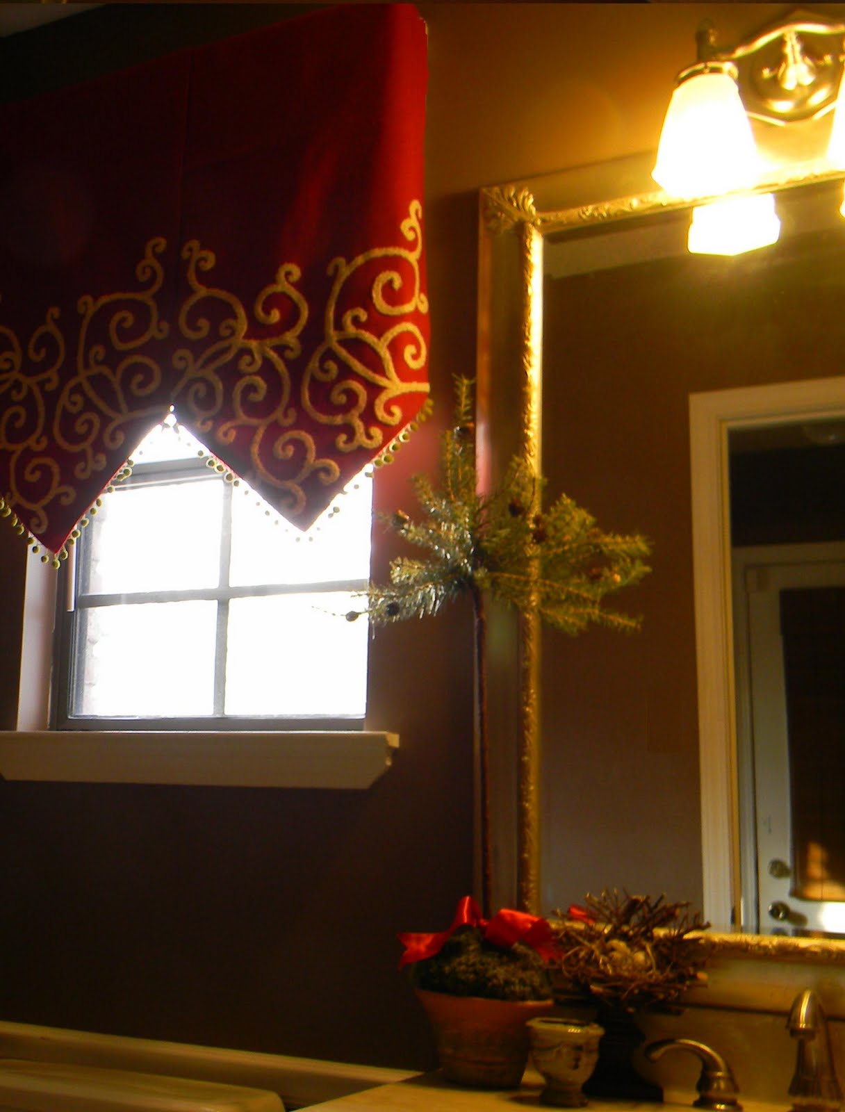 I didn’t do much on the work side of the kitchen. This mistreatment made from towels, fabric glue and a tension rod gives a nod to the season. This side of the kitchen is still a bit of a mess with half-painted cabinets. Maybe I’ll get the energy (and budget) to get this project finished in 2012.