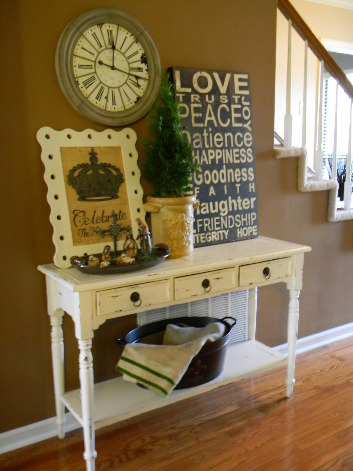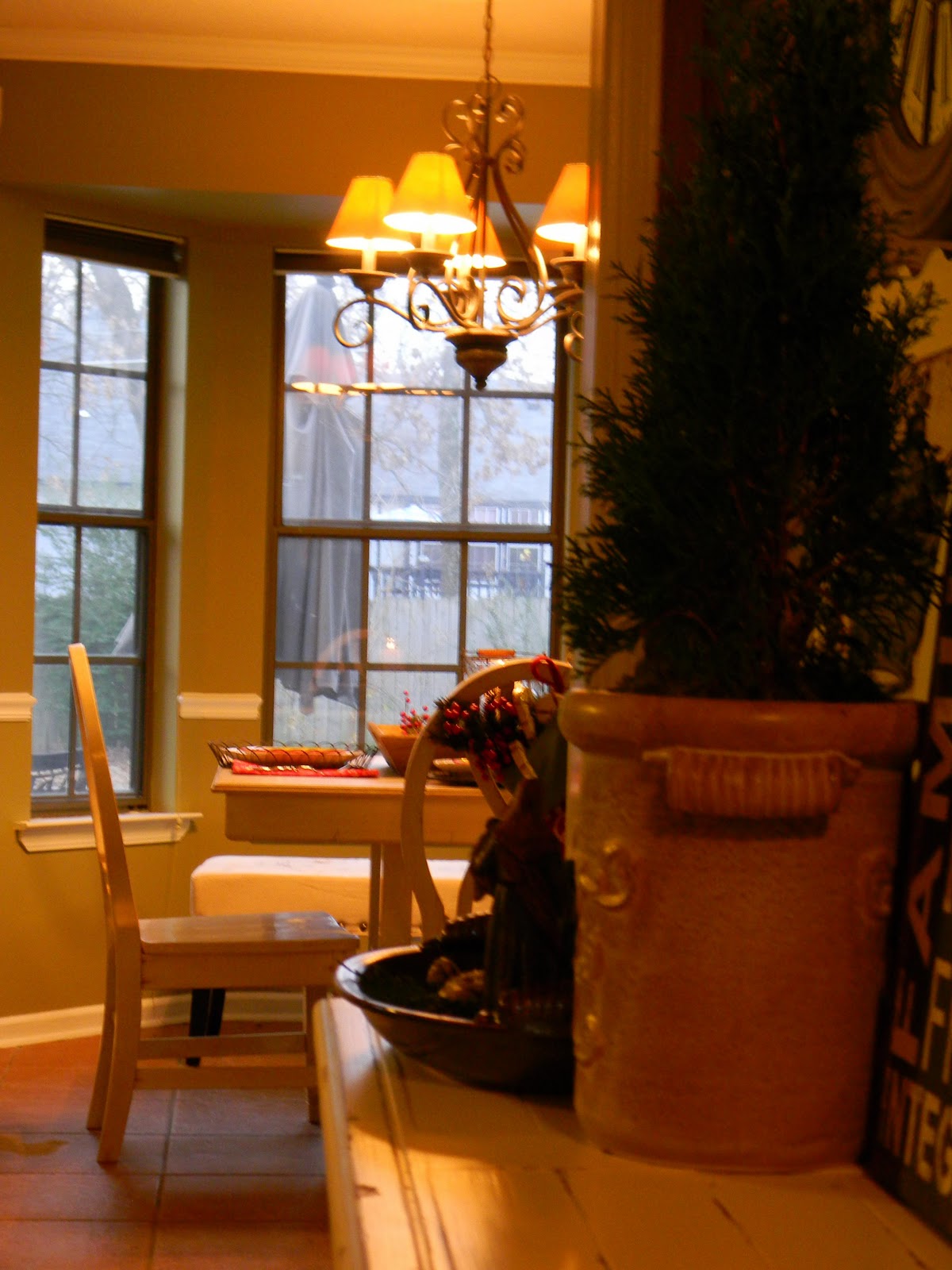 Wonderful cozy feeling while visiting your lovely home! Love the table and adore the beautiful Nativity that you have displayed…gorgeous!
