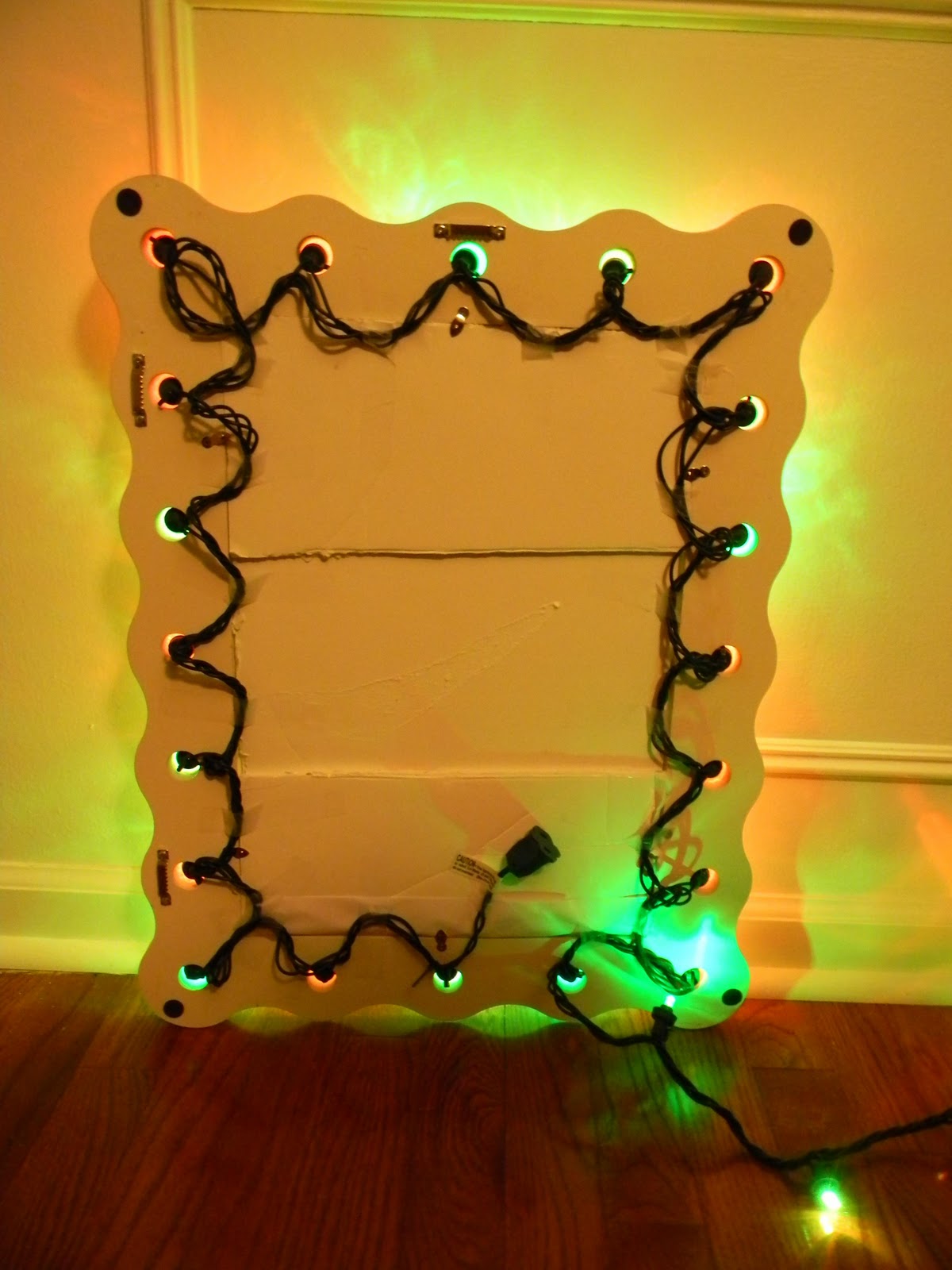 I needed to add a couple of pieces of foam board to make it tight in the frame. To finish it all off, I taped down the cords between the lights in the back so everything would stay in place.
