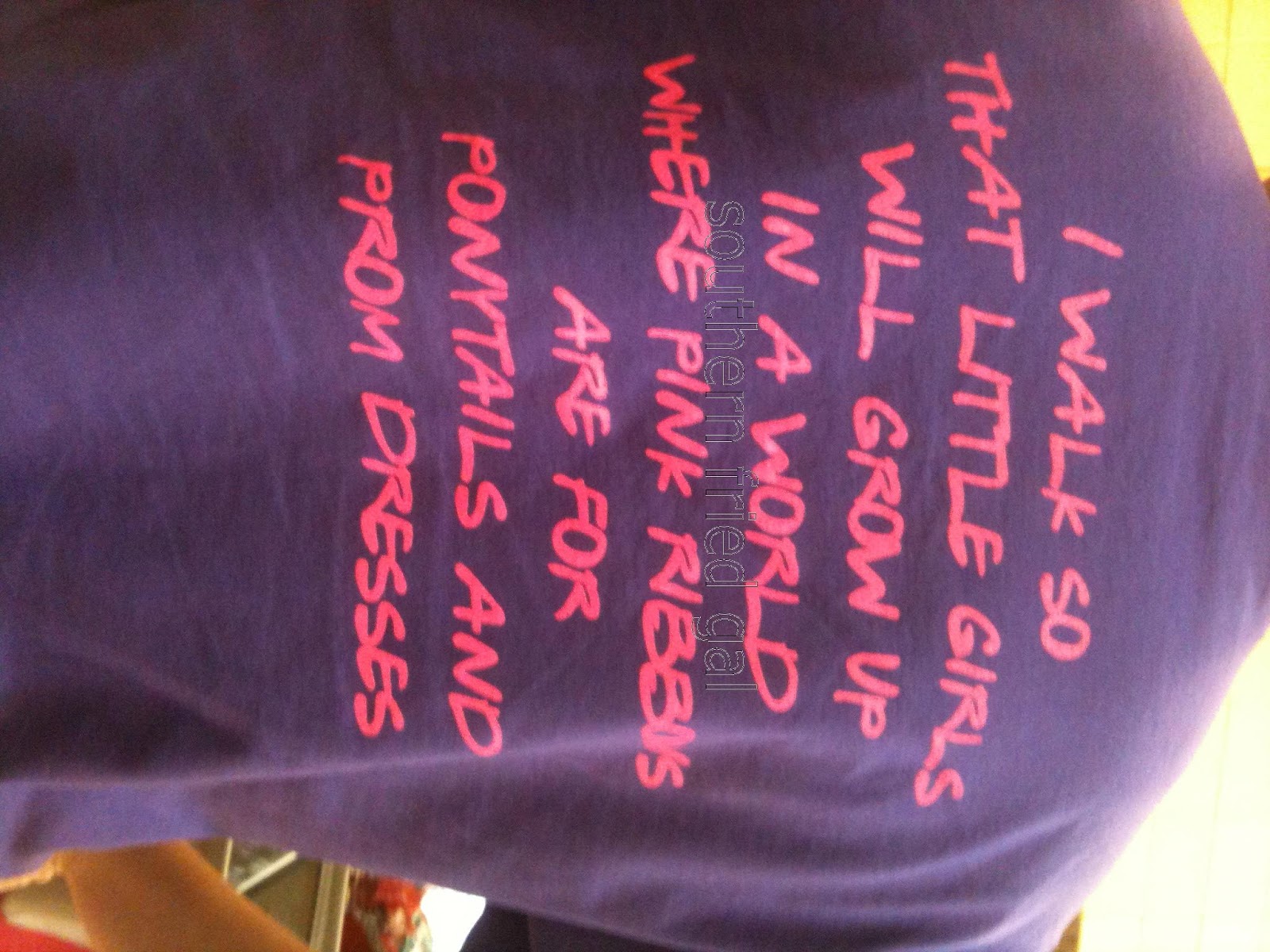 In honor of the Race for the Cure in Little Rock tomorrow, today’s Southern Fried Days gets serious. I snapped this picture a couple of years ago at a local crafts fair on the day of the local race. This is hands down the best race t-shirt slogan. I wish I could remember the race team that came up with this to give proper credit – props to them!